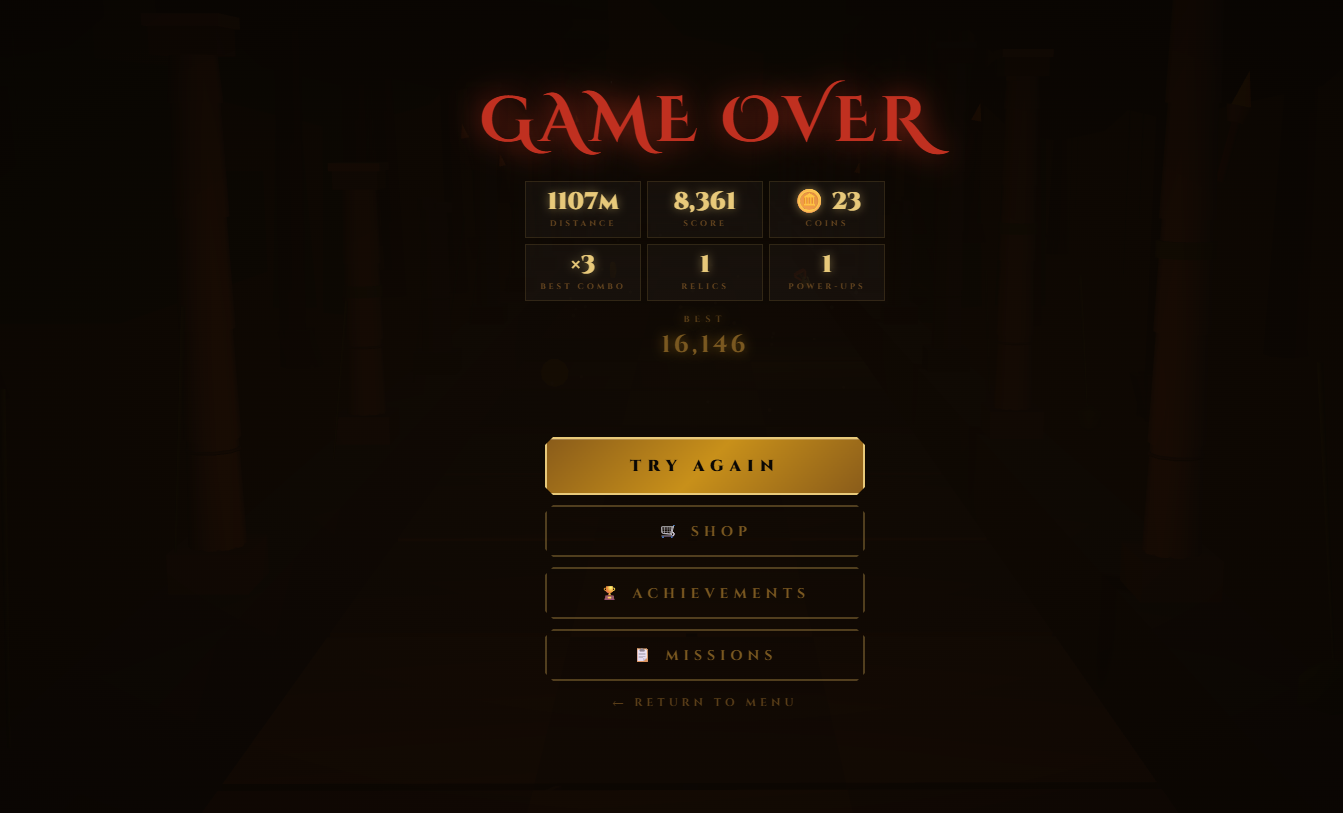 RELIC RUSH is a high-speed endless runner focused on skill, timing, and quick decision-making.